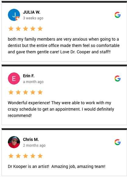 No. Most patients are surprised by how comfortable and relaxing the entire experience is. We use advanced numbing and sedation options to keep you pain-free. Plus, you'll enjoy amenities like TVs in every room, warm towels, and complimentary beverages. Many patients tell us it's the most comfortable dental visit they've ever had.